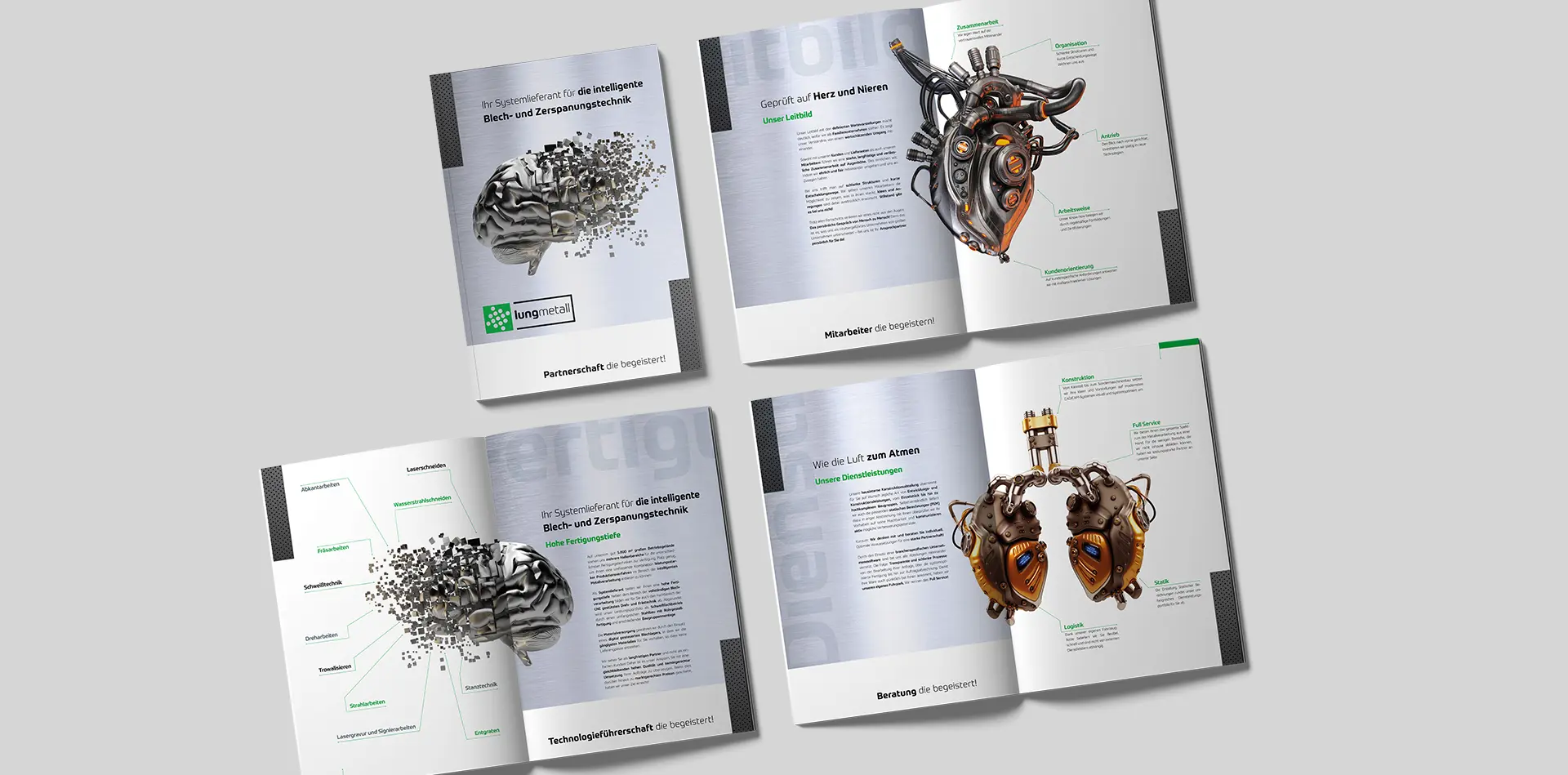 Produktbroschüren, Kundenmagazine, Mitarbeiterzeitschriften, Geschäftsberichte oder Bücher verlangen konzeptionelle Tiefe und gestalterische Präzision. Wir entwickeln Editorial Design für Broschüren unterschiedlichster Art. Struktur, Typografie und Bildsprache greifen dabei perfekt ineinander – für hochwertige Inhalte mit klarer Leserführung.